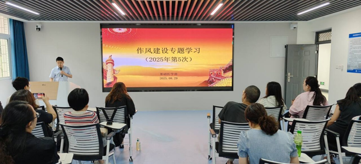 8月29日上午,基础医学部组织全体教师开展作风建设专题学习,重点解读学校近期印发的相关文件。