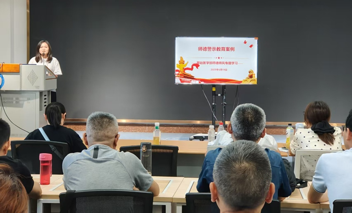 6月19日下午,基础医学部开展2025年第5次师德师风专题学习。通过两起高校教师不当言论真实案例的警示教育,以及重温《新时代高校教师职业行为十项准则》,进一步强化部门教师的师德师风意识。