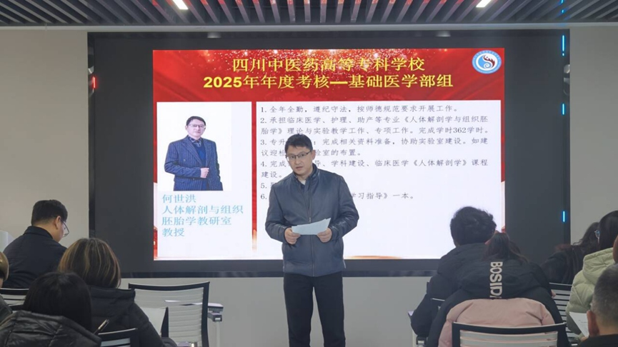 本次考核以教职工年度履职情况为核心,全面复盘工作成效、深入查摆问题不足、系统规划改进方向。梁晓峰副校长肯定了全体教师一年来的履职成效与担当精神,并强调,要以此次考核为契机,进一步聚焦人才培养核心任务,深化教学科研融合,强化部门内涵建设,为学校医学教育高质量发展筑牢坚实基础。